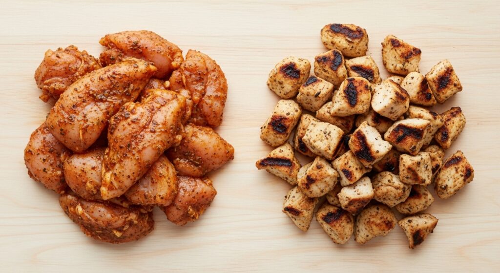 Rub jerk seasoning, lime juice, and a touch of olive oil all over the chicken. Let marinate at least 30 minutes (overnight if possible). Sear or grill the chicken over medium heat until fully cooked and slightly charred. Let rest, then slice.